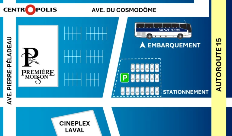 **Nouveau lieu d’embarquement à Laval à partir du 3 octobre. Veuillez visiter notre page contactez-nous pour connaître l’adresse exacte et tous les détails.**