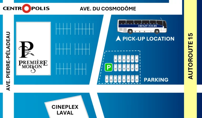**New bus Laval pick up location as of October 3. Please visit the contact us page for exact location and parking details.**